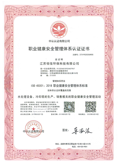 經過多年來的不懈努力,公司已經形成良好的管理和運作體系。獲得了<江蘇質量誠信3a品牌企業>榮譽證書 并已通過ISO9001質理管理體系認證、ISO1400環境管理體系標準及 ISO45001職業健康管理體系標準。